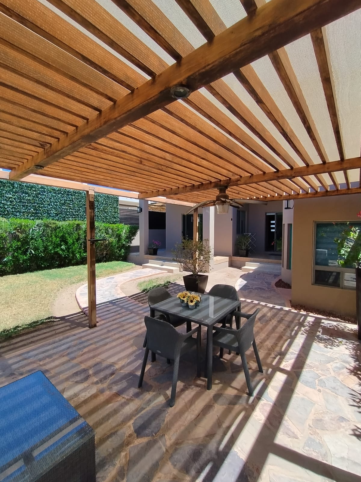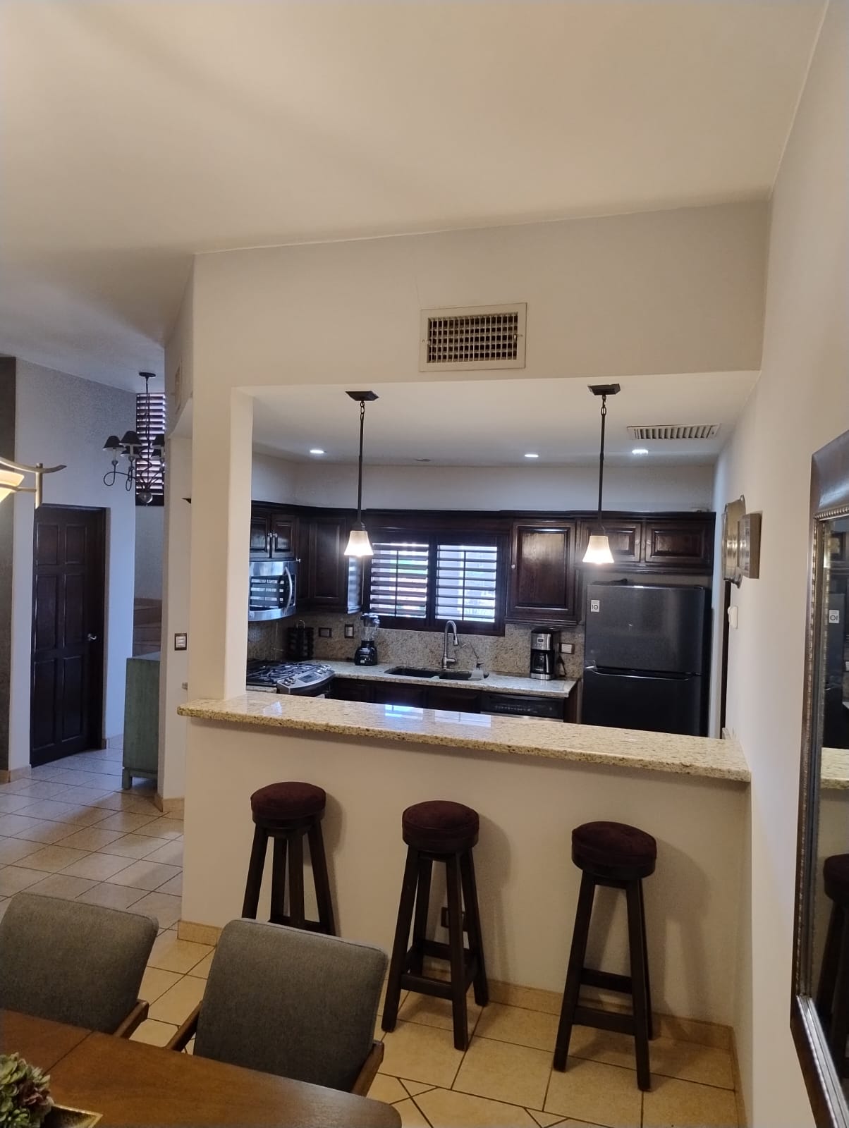 We present this beautiful home located in the exclusive Privada Royal, on the Country club community, a comfortable and cozy two-story house perfect for families. It features 3 spacious bedrooms, 2.5 bathrooms, a fully equipped kitchen, a dining area, and a large living room ideal for relaxing and spending time together. You can also enjoy a lovely backyard with a garden and a small outdoor dining area, perfect for peaceful mornings or evenings. The home includes parking for one vehicle and is equipped with 3 queen beds and 1 twin bed, the latter ideal for a child. Additionally, it offers a laundry room, closets in every bedroom, and a balcony that enhances the overall experience. This is the perfect space for a complete family seeking comfort, tranquility, and a memorable stay. 📩 Book now and enjoy a wonderful experience.